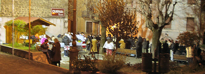 Sul lato opposto della piazza, davanti al palazzo comunale, già dal primo pomeriggio, i volontari della Pro Loco, affaccendati attorno ai paioli, stavano preparando la polenta di San Sebastiano, per festeggiare degnamente il Santo nel solco della più genuina tradizione santostefanese <<che risale al 1643, all’antico uso dello "Sfamo del Popolo", in occasione della festività di San Sebastiano, quando veniva erogato alla popolazione un piatto caldo di polenta>> ci spiega il presidente Marina Bonomo, anche lei impegnata con altre signore "vere anime della festa", a preparare il sugo, mentre il mastro polentaio sovrintendeva al proprio compito con la stessa maestria di una volta. Una volta pronto, il saporito piatto popolare e contadino è stato servito in generose porzioni alla folla di buongustai in fila davanti al bancone della distribuzione, con sugo di spuntature e fumanti salsicce di suino. Tutto spolverato con pecorino o parmigiano e accompagnato da un buon bicchiere di vino. <<La consuetudine della polentata di san Sebastiano, ripresa dalla Pro Loco nel 1978, organizzata in collaborazione con l’Amministrazione Comunale e con il patrocinio della Regione Lazio, apre ogni anno la serie di iniziative del sodalizio santostefanese – conclude la signora Bonomo - ormai è diventata un appuntamento fisso>>. up 27 genn. 2007