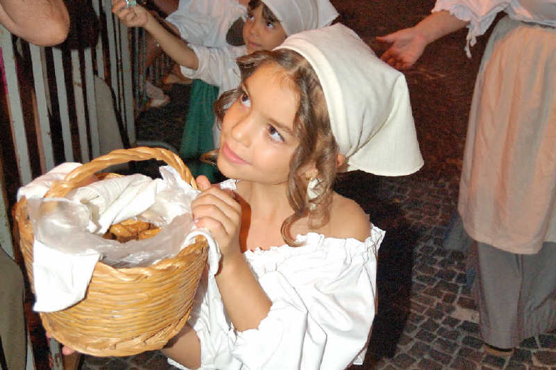Durante la sfilata le contrade hanno offerto dolcetti, vino e prodotti locali molto apprezzati da tutti i presenti.