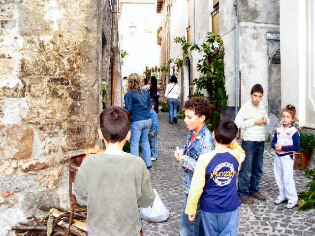 Sabato, al termine della ACR tantissimi ragazzi grandi e piccini si sono riversati nei pressi dell’associazione in via S. Maria, dove erano già in atto i preparativi per l’accoglienza. Dall’ingresso della loggia per tutto il percorso fino alla Chiesa tantissimi rami di castagno con i ricci hanno addobbato come se fosse Natale il borgo di Villa S Stefano. I ragazzi, muniti di cesti, hanno poi attaccato a tutte le porte degli abitanti una castagna realizzata da loro con cartoncino marrone e giallo. Detta operazione era iniziata il 27 settembre in contrada Macchioni dove i bambini intervenuti in grande quantità avevano ritagliato, nel laboratorio all’aperto, tantissime castagne per decorare le loro case. Molti di loro sono interventi numerosi alla festa di sabato scorso ed hanno aiutato a decorare il centro storico. Un allegra merenda, giochi e le attese caldarroste sono state distribuite nei "cartoccetti" anche ai passanti ed a persone di altri paesi intervenuti alla festa. Un piacevole dono come era stato annunciato è stato consegnato a tutti i bambini: un ricettario per la cottura delle castagne artigianalmente confezionato per l’occasione. E’ stato molto emozionante vedere d’un tratto il paese pieno di castagne, sembrava di stare in un bosco come dicevano molte persone che si recavano alla santa Messa mentre sorridevano e si chiedevano cosa stesse accadendo! Che dire di Raffaele che andando via mi ha detto "Franca, grazie per avermi invitato a questa splendida festa!".