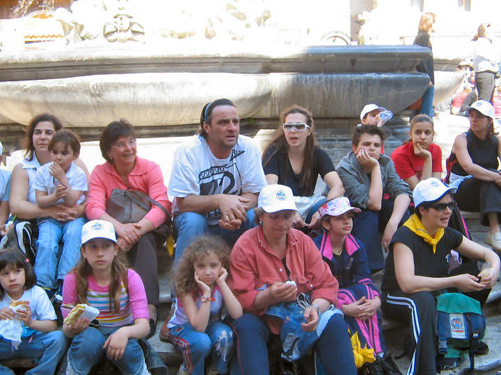 sdraiati sulle gradinate della fontana per riposare, ma il prof.