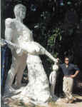 In Contrada San Giovanni di Villa Santo Stefano, amena zona di campagna, transitando da Via San Giovanni in direzione di Via Stretta Cupa, (strada che conduce al Santuario della Madonna dello Spirito Santo), si nota, in bella vista, una terreno attorniato da tante statue di color bianco. E' il rifugio di campagna di Mario Palladini, avvocato di professione, scultore e pittore per passione. Nel tempo libero, l’avvocato Palladini, che vive a Roma, torna volentieri in paese per ritemprarsi dalle fatiche professionali e dare libero sfogo ai suoi passatempi preferiti: l’arte della scultura e della pittura. Fuori dal caos cittadino e dallo stress della vita quotidiana, nella quiete del suo terreno di campagna, Mario trova l’ispirazione per realizzare le sue opere e coltivare la cultura dell’arte. Per un artista, infatti, la fase cruciale del processo creativo, è la concentrazione: elemento essenziale, che richiede assoluta calma e riflessione.Mario è nato a Villa Santo Stefano, il primo gennaio del 1951, da genitori santostefanesi: il padre era Cesare Palladini, e la madre Iolanda Bonomo. In paese, dove ha vissuto l’infanzia, aveva un gruppo d’amici fidati, con i quali si divertiva ad inventare giochi e passatempi vari; tra i tanti aneddoti che lo riguardano, da ricordare l’episodio "dell’ululato del cane". Davanti al piazzale del Comune, Mario assieme a numerosi amici, aveva organizzato uno scherzo particolare. Al suono della sirena di mezzogiorno, (ricordiamo che una volta la sirena, che scandiva i ritmi di vita dei contadini, suonava allo scoccare delle ore 08.00 e delle ore 12.00, ora l’usanza viene mantenuta solo per mezzogiorno), Mario e compagnia, all’unisono e con perfetto sincronismo, si mettevano a simulare il latrare del cane: tutti quanti ad abbaiare, tra lo stupore ed il divertimento dei passanti. Mario ha frequentato le scuole elementari a Villa fino all’età di nove anni, poi con la famiglia, si è trasferito a Roma. Dopo le scuole medie e l’Istituto Magistrale, ha studiato al Magistero, laureandosi in Psicologia. Successivamente, si è iscritto all’Università degli Studi "La Sapienza" di Roma, dove ha conseguito la laurea in Giurisprudenza. Attualmente, svolge la professione d’avvocato civilista e penalista, con un proprio studio legale nel quartiere Eur della capitale, al seguente indirizzo: in Via Leonardo Umile, numero 42, Roma. Numero di telefono e fax 06 52246383. Inoltre, riveste l’importante carica di Giudice Onorario al Palazzo di Giustizia di Frosinone. E’ un professionista serio e competente in materia giudiziaria, rispettato ed apprezzato nell’ambiente e dai colleghi. La passione per l’arte gli è nata sin da piccolo, ha iniziato in tenera età a dipingere, dimostrando subito talento ed una spiccata predisposizione naturale. In seguito ha imparato l’arte della scultura. Ha realizzato numerose opere scultorie e dipinti, che ha esposto al pubblico, partecipando ad una mostra d’arte a Roma, dove ha ottenuto elogi e positivi consensi. Per la composizione delle sue sculture utilizza materiale di cemento bianco rasante, sabbia e creta cotta. La lavorazione inizia con la costruzione dello scheletro di filo di ferro, su tale impalcatura viene attaccato il cemento e quindi modellato. Per la rifinitura, vengono usate spatole e coltelli, di varia forma e lunghezza. Il tutto viene finalizzato nel lavoro manuale; infatti, sono le mani a creare, plasmare e modellare, in definitiva a dare corpo e forma alla realizzazione del soggetto artistico.