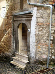 pag.2/2 via San Sebastiano e Palazzo Marchese Le tre date incise sui capitelli (1771 - 1783 e 1787) stanno a testimoniare il lento progredire dei lavori conclusi con l'arco d'ingresso (i' sp'rt') che reca anche lo stemma del Marchese Giacomo Iorio: una colonna con sovrapposto un cerchio e sulla quale poggia un animale fantastico (araba fenice?)